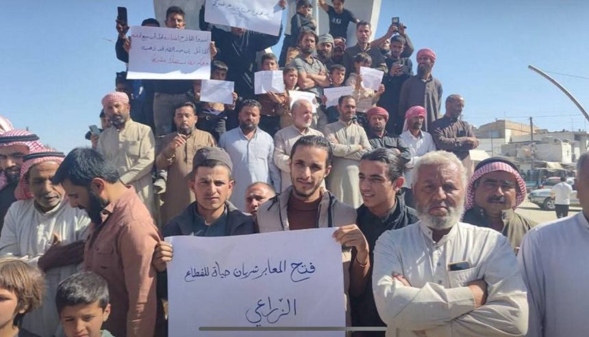 نظم المئات من أهالي منطقة سلوك في ريف محافظة الرقة اعتصاماً في دوار مدينة سلوك للمطالبة بتحسين الوضع الزراعي وإيجاد طرق لتسويق المحاصيل باتجاه سيطرة الدولة السورية.