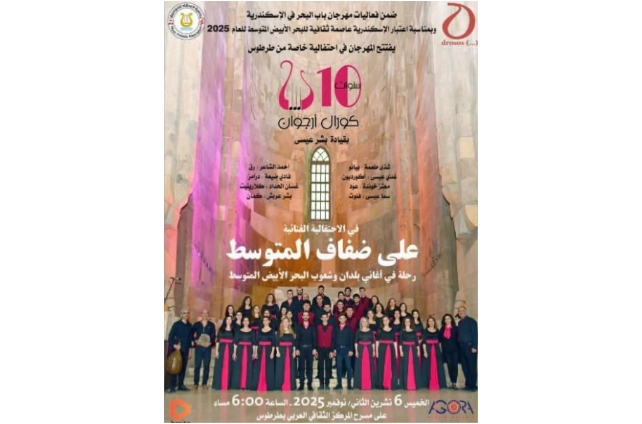 يشارك “كورال أرجوان” بقيادة الموسيقي بشر عيسى في حفل افتتاح “مهرجان باب البحر” الذي يقام احتفاءً بالإسكندرية عاصمةً ثقافيةً للبحر الأبيض المتوسط لعام 2025.