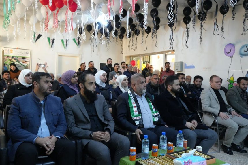 ونظمت كلية التربية الثالثة بفرع جامعة دمشق في درعا، احتفالية بالتعاون مع مؤسسة عيون درعا بمناسبة الذكرى السنوية الأولى لتحرير سوريا.