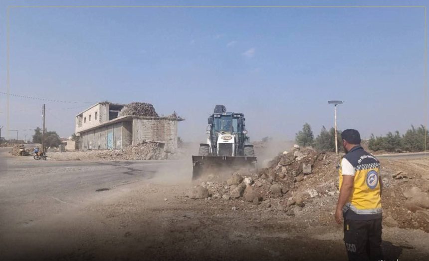 كما نفذت آليات فرق الدفاع المدني بالتعاون مع آليات مديرية الخدمات الفنية إزالة السواتر الترابية والأسمنتية التي شيدت في زمن النظام البائد على الطريق الرابط بين بلدتي الصمدانية الشرقية وأم باطنة، من أجل فتح الطريق أمام الأهالي والمركبات بما يسهم في تحسين حرية التنقل بين البلدات .