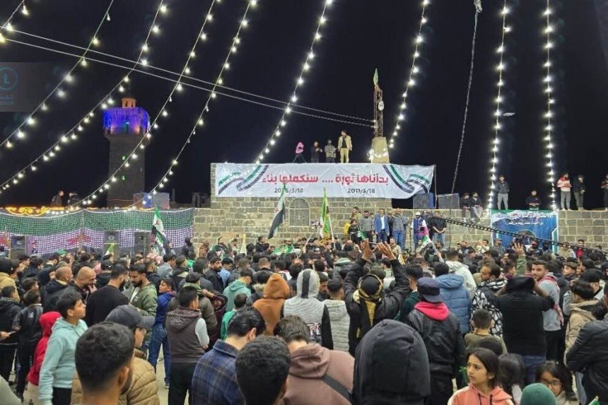احتفالية حاشدة في ساحة الجامع العمري.. أهالي درعا يستحضرون المحطات الأولى لانطلاقة الثورة السورية في ذكراها الـ15