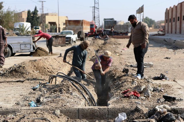 باشرت ورشات المقسم الثاني التابع لفرع اتصالات ديرالزور أعمال صيانة واستبدال الشبكة الهاتفيّة في المدينة، حي الضاحية الجديدة، جانب مستودع الهلال الأحمر.