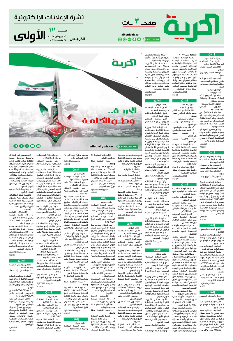 إعلانات اعلانات «صحيفة-الحرية» العدد /111/ تاريخ 18-09-2025 2025-09-18 مدة القراءة 0 دقيقة/دقائق مشاركة Loading... Taking too long? Reload document | Open in new tab تحميل الملف [845.61 KB] الوسوم:تاريخ 18-09-2025 Leave a Comment Leave a Comment اترك تعليقاً إلغاء الردلن يتم نشر عنوان بريدك الإلكتروني. الحقول الإلزامية مشار إليها بـ *التعليق * الاسم * البريد الإلكتروني * الموقع الإلكتروني احفظ اسمي، بريدي الإلكتروني، والموقع الإلكتروني في هذا المتصفح لاستخدامها المرة المقبلة في تعليقي.