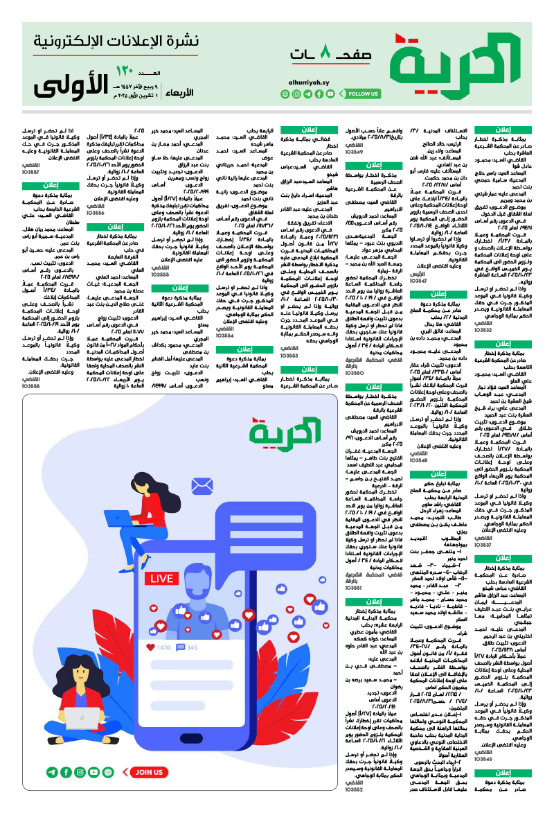 اعلانات «صحيفة-الحرية» العدد /120/ تاريخ 01-10-2025