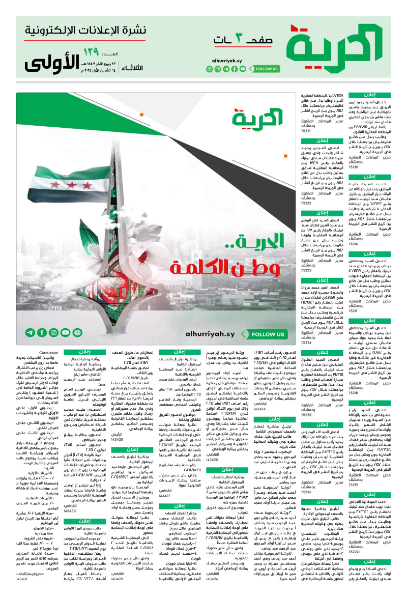 إعلانات اعلانات «صحيفة-الحرية» العدد /129/ تاريخ 14-10-2025 2025-10-14 مدة القراءة 0 دقيقة/دقائق مشاركة Loading... Taking too long? Reload document | Open in new tab تحميل الملف [426.36 KB] الوسوم:اعلاناتتاريخ 14-10-2025 Leave a Comment Leave a Comment اترك تعليقاً إلغاء الردلن يتم نشر عنوان بريدك الإلكتروني. الحقول الإلزامية مشار إليها بـ *التعليق * الاسم * البريد الإلكتروني * الموقع الإلكتروني احفظ اسمي، بريدي الإلكتروني، والموقع الإلكتروني في هذا المتصفح لاستخدامها المرة المقبلة في تعليقي.