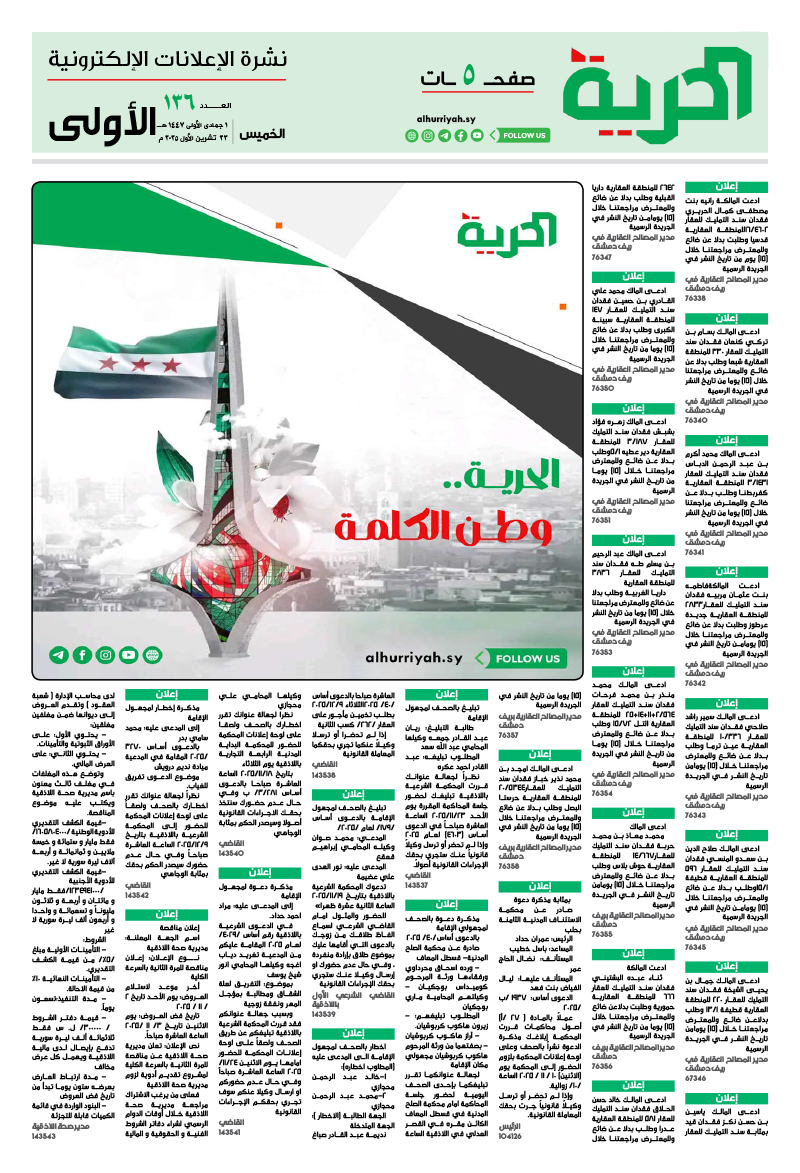اعلانات «صحيفة-الحرية» العدد /136/ تاريخ 23-10-2025
