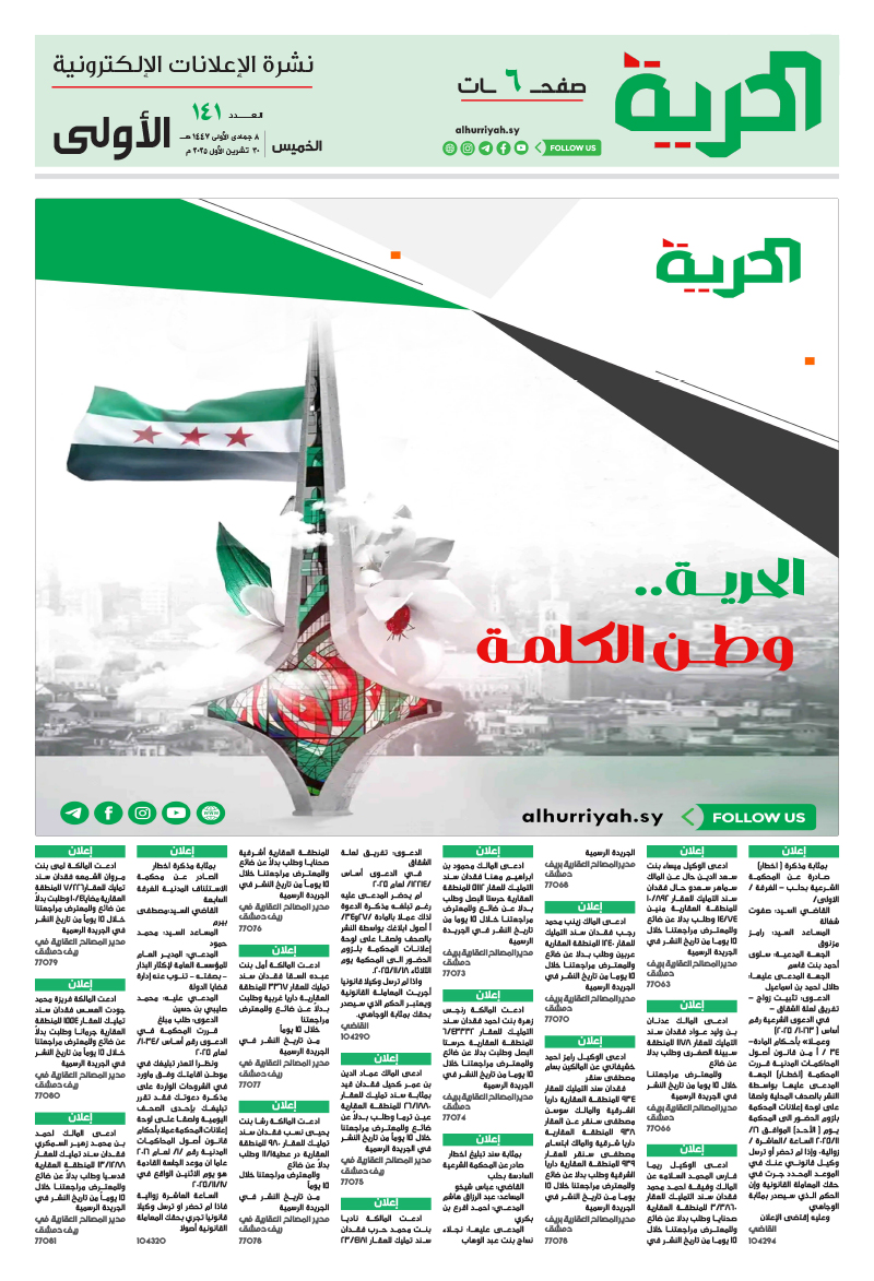 إعلانات اعلانات «صحيفة-الحرية» العدد /141/ تاريخ 30-10-2025 2025-10-30 مدة القراءة 0 دقيقة/دقائق مشاركة Loading... Taking too long? Reload document | Open in new tab تحميل الملف [2.60 MB] الوسوم:اعلاناتتاريخ 30-10-2025 Leave a Comment Leave a Comment اترك تعليقاً إلغاء الردلن يتم نشر عنوان بريدك الإلكتروني. الحقول الإلزامية مشار إليها بـ *التعليق * الاسم * البريد الإلكتروني * الموقع الإلكتروني احفظ اسمي، بريدي الإلكتروني، والموقع الإلكتروني في هذا المتصفح لاستخدامها المرة المقبلة في تعليقي.