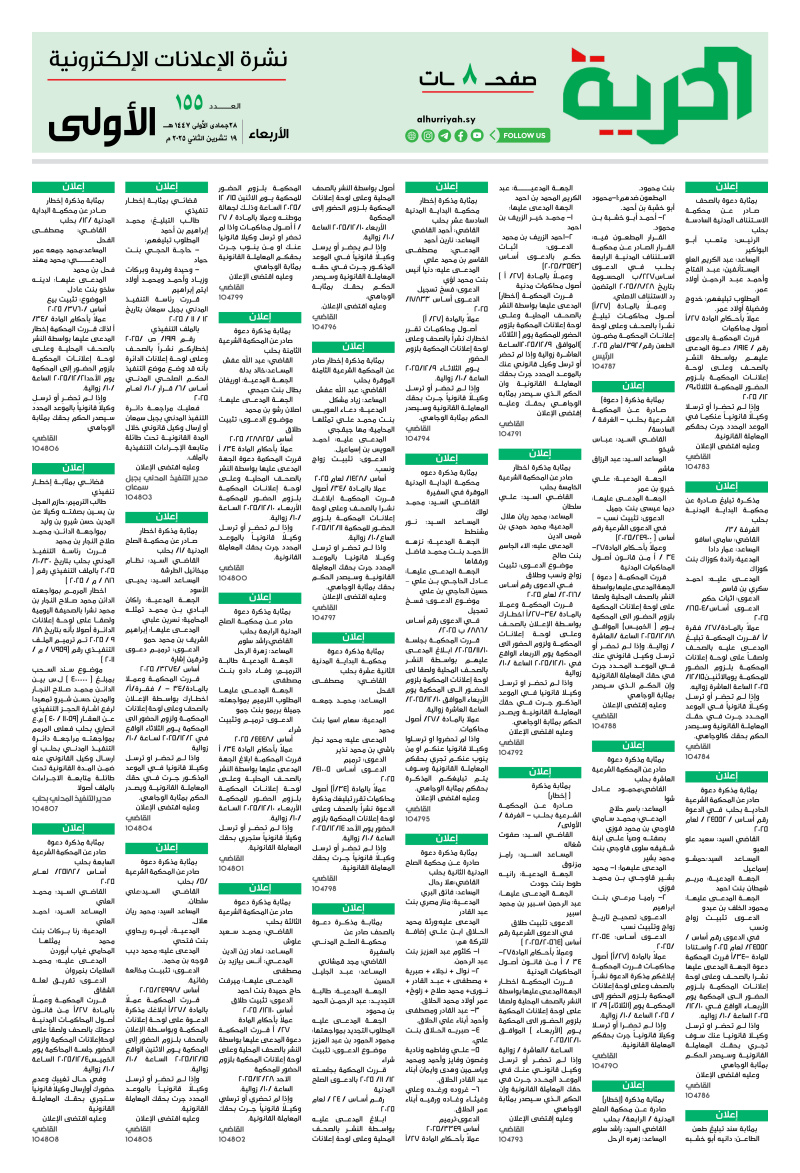 إعلانات اعلانات «صحيفة-الحرية» العدد /155/ تاريخ 19-11-2025 2025-11-19 مدة القراءة 0 دقيقة/دقائق مشاركة Loading... Taking too long? Reload document | Open in new tab تحميل الملف [3.74 MB] الوسوم:اعلاناتتاريخ 19-11-2025 Leave a Comment Leave a Comment اترك تعليقاً إلغاء الردلن يتم نشر عنوان بريدك الإلكتروني. الحقول الإلزامية مشار إليها بـ *التعليق * الاسم * البريد الإلكتروني * الموقع الإلكتروني احفظ اسمي، بريدي الإلكتروني، والموقع الإلكتروني في هذا المتصفح لاستخدامها المرة المقبلة في تعليقي.