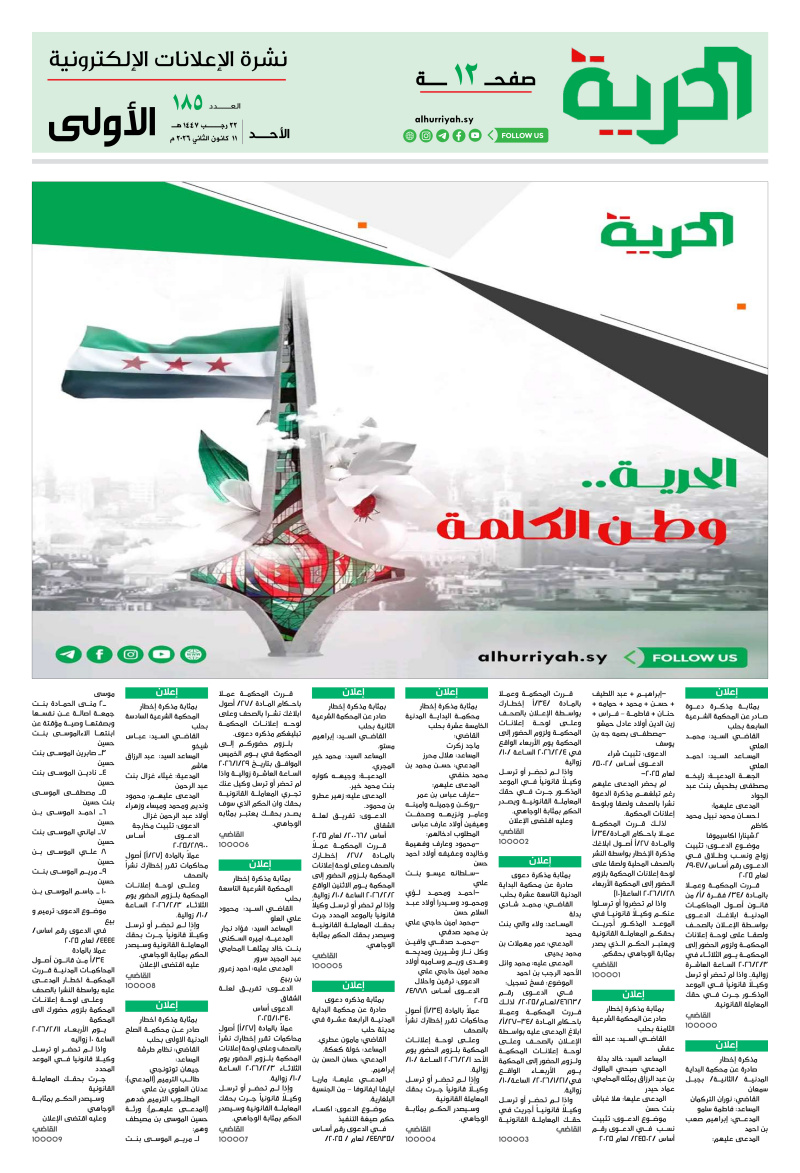 إعلانات اعلانات «صحيفة-الحرية» العدد /185/ تاريخ 11-01-2026 2026-01-11 مدة القراءة 0 دقيقة/دقائق مشاركة Loading... Taking too long? Reload document | Open in new tab تحميل الملف [2.46 MB] الوسوم:اعلاناتتاريخ 11-01-2026 Leave a Comment Leave a Comment اترك تعليقاً إلغاء الردلن يتم نشر عنوان بريدك الإلكتروني. الحقول الإلزامية مشار إليها بـ *التعليق * الاسم * البريد الإلكتروني * الموقع الإلكتروني احفظ اسمي، بريدي الإلكتروني، والموقع الإلكتروني في هذا المتصفح لاستخدامها المرة المقبلة في تعليقي.