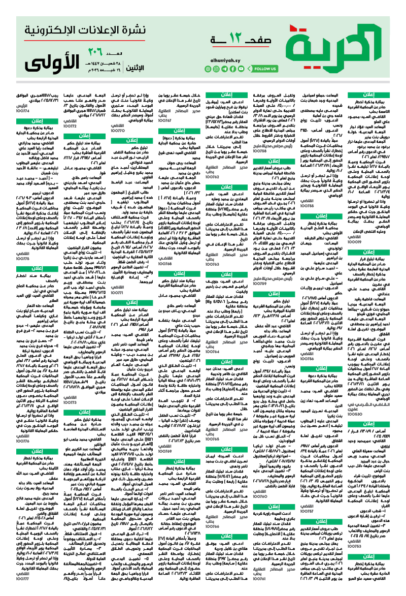 إعلانات اعلانات «صحيفة-الحرية» العدد /206/ تاريخ 16-02-2026 2026-02-16 مدة القراءة 0 دقيقة/دقائق مشاركة Loading... Taking too long? Reload document | Open in new tab تحميل الملف [1.90 MB] الوسوم:اعلاناتتاريخ 16-02-2026 Leave a Comment Leave a Comment اترك تعليقاً إلغاء الردلن يتم نشر عنوان بريدك الإلكتروني. الحقول الإلزامية مشار إليها بـ *التعليق * الاسم * البريد الإلكتروني * الموقع الإلكتروني احفظ اسمي، بريدي الإلكتروني، والموقع الإلكتروني في هذا المتصفح لاستخدامها المرة المقبلة في تعليقي.