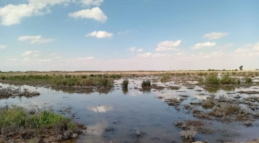 مبينين أن غياب الصيانة الدورية للمصارف الرئيسية والفرعية في القطاع السابع، والتي تعاني من الانسداد حوّل الأراضي الزراعية إلى مستنقعات ملحيّة .