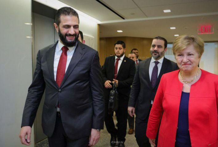 وقالت جورجييفا في منشور على منصة «x»: «لقد كان مصدر سرور أن أرحب بالرئيس أحمد الشرع في صندوق النقد الدولي، وقد ناقشنا التحول الاقتصادي الذي يحتاجه السوريون ويستحقونه، والذي تجعله حكومته ممكناً الآن، كما جددتُ التأكيد على استعداد الصندوق لتقديم المساعدة، من خلال دعمنا الفني والتقني الحالي للمؤسسات الرئيسية في سوريا».