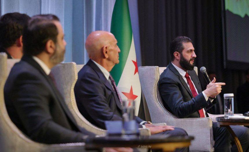 بدوره ألقى السفير توماس براك مداخلة أشاد فيها بدور الجالية السورية في تعزيز العلاقات بين سوريا والمجتمع الدولي، وأكد حرص الولايات المتحدة على دعم المبادرات التي تُسهّل عودة سوريا إلى المحيطين الإقليمي والدولي.