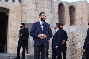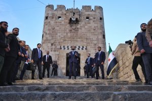 وأعرب الرئيس الشرع عن سعادته بوجوده بين أهالي مدينة حلب قائلاً: “أنتم اليوم تكتبون التاريخ بأيديكم يا أهل حلب، سوريا كلها تنظر إليكم اليوم”.