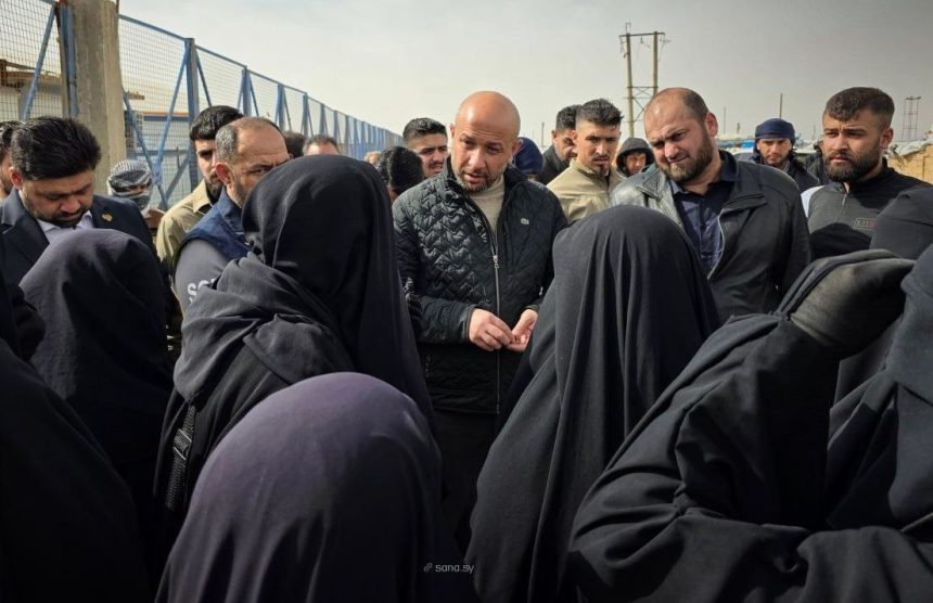 كما تفقد الوزير مخيم الهول شرق الحسكة، واطلع على الخدمات المقدمة للأسر الموجودة في المخيم ولاسيما من المنظمات ومؤسسات المجتمع المدني الموجودة فيه، وأكد على ضرورة رفع مستوى الخدمات المقدمة، إلى المستوى الذي يحفظ كرامة الأسر الموجودة في المخيم ويلبي احتياجاتها في مختلف المجالات.