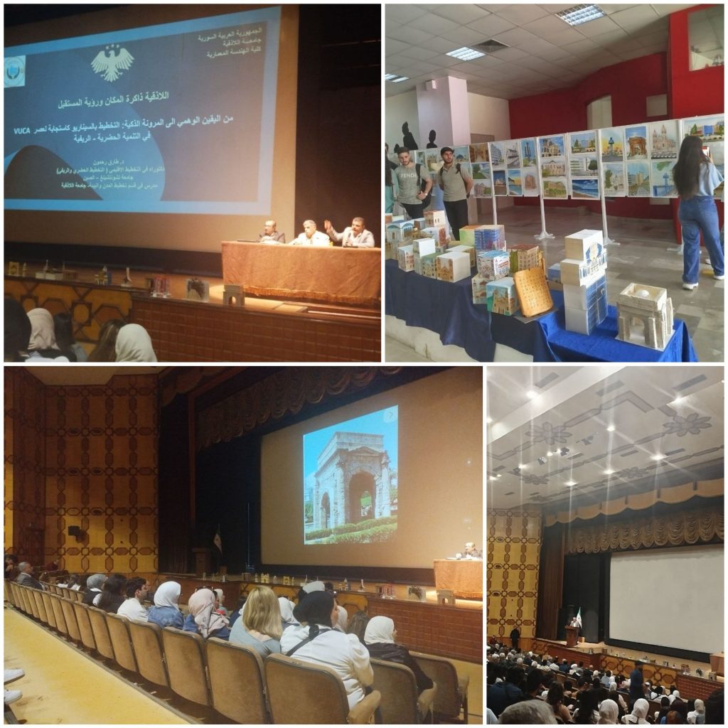 بدوره، قدم الدكتور طارق رحمون خلال محاضرته التي حملت عنوان: “من اليقين الوهمي إلى المرونة الذكية التخطيط بالسيناريو كاستجابة لعصر VUCA في التنمية الحضرية والريفية” رؤية استشرافية لتأهيل البنى التحتية، مستشهداً بأمثلة حية من مشاريع الترميم في المدينة،وشدد على ضرورة تطبيق منهجيات “التخطيط بالسيناريو” لدمج عناصر الحداثة مع النسيج التاريخي للمباني، وضمان استدامتها لتلبية الاحتياجات.
