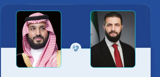 الرئيس الشرع يجري اتصالاً هاتفياً مع ولي العهد السعودي لبحث تعزيز التعاون الثنائي