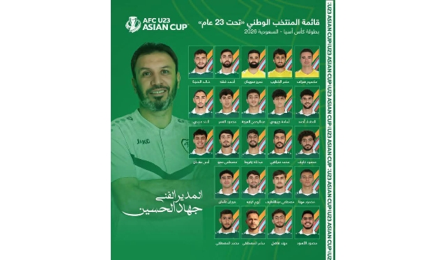 وقبل مغادرته إلى جدة أعلن المدير الفني لمنتخبنا الأولمبي، جهاد الحسين، القائمة النهائية التي ستشارك في البطولة.