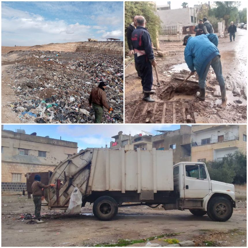 تعزيل مكب الشياح بدرعا.. واستمرار أعمال معالجة انسداد المطريات وترحيل النفايات