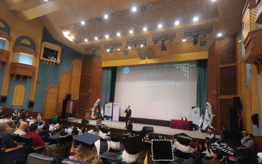 وعاهدت الدكتورة نايا الكردي، في كلمة الخريجين، تضحيات الشهداء الذين عبدوا طريق النصر وعلّمونا أن الموت حياة في سبيل الكرامة والحرية، موجّهة الشكر لكل نازح وجريح قضوا في مخيمات اللجوء أجمل سنين عمرهم، مؤكدة أن على الخريجين تقع مسؤولية بناء سوريا الجديدة الحرة.