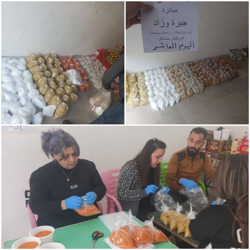 ومن المبادرات الأهلية في هذا الشّهر الفضيل كانت مبادرة “جيرة وزاد من بيتي لبيتك ورمضان بيجمعنا” في مدينة الدّريكيش وريفها القريب.