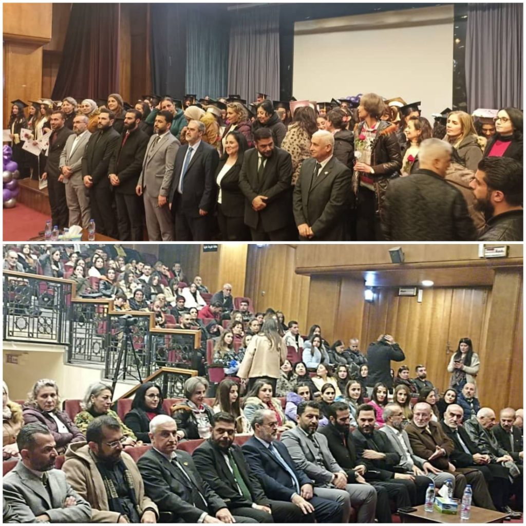 وفي كلمة لها، عبرت الطالبة الأولى على الدفعة مادلين جواد علي عن سعادتها وفخرها بما حققته، معتبرة أن مرحلة ما بعد التخرج تمثل بداية لتحمل المسؤولية المهنية، ومعربة عن تطلعها إلى أن تكون عنصراً فاعلاً في خدمة المجتمع والمساهمة في إعادة بناء سوريا.