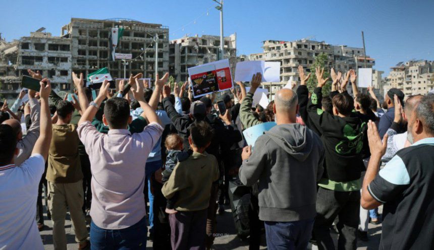 في ساحة مسجد خالد بن الوليد بمدينة حمص، احتشد اليوم المئات من الأهالي في وقفة احتجاجية دعماً لأبناء الجزيرة السورية، ورفضاً لما وصفوه بالممارسات القمعية التي تنتهجها “قسد” في المنطقة.