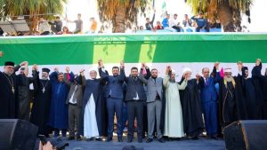كما ركّزت اللافتات على ضرورة نبذ الخطاب الطائفي، باعتبار أن الانتماء الديني أو المذهبي يجب أن يكون حافزاً للتسامح والإنسانية، لا مدخلاً للفرقة، وبرز شعار: كن إنساناً ومواطناً سورياً أولاً بشكل لافت بين المشاركين.