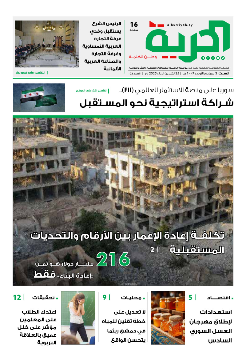 الصحيفة الالكترونية صحيفة الحرية العدد رقم /02/ تاريخ /25/ تشرين الأول 2025-10-25 مدة القراءة 0 دقيقة/دقائق مشاركة Loading... Taking too long? Reload document | Open in new tab تحميل الملف [1.18 MB] الوسوم:الحريةالعددتاريخ /25/ تشرين الأولرقم /02/صحيفة Leave a Comment Leave a Comment اترك تعليقاً إلغاء الردلن يتم نشر عنوان بريدك الإلكتروني. الحقول الإلزامية مشار إليها بـ *التعليق * الاسم * البريد الإلكتروني * الموقع الإلكتروني احفظ اسمي، بريدي الإلكتروني، والموقع الإلكتروني في هذا المتصفح لاستخدامها المرة المقبلة في تعليقي.