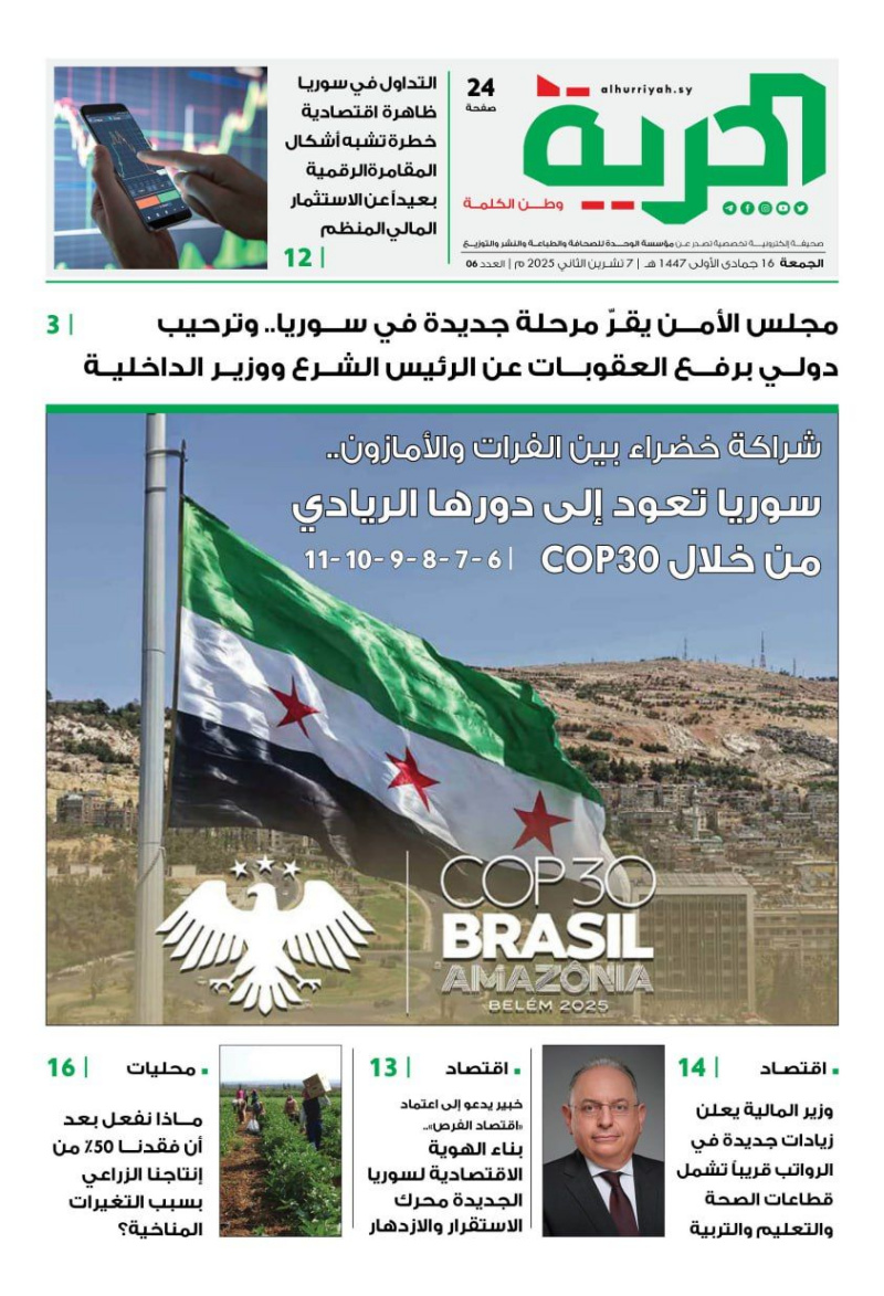Uncategorized صحيفة الحرية العدد رقم /06/ تاريخ /07/ تشرين الثاني 2025-11-07 مدة القراءة 0 دقيقة/دقائق مشاركة Loading... Taking too long? Reload document | Open in new tab تحميل الملف [1.77 MB] الوسوم:العدد رقم /06/تاريخ /07/ تشرين الثانيصحيفة-الحرية Leave a Comment Leave a Comment اترك تعليقاً إلغاء الردلن يتم نشر عنوان بريدك الإلكتروني. الحقول الإلزامية مشار إليها بـ *التعليق * الاسم * البريد الإلكتروني * الموقع الإلكتروني احفظ اسمي، بريدي الإلكتروني، والموقع الإلكتروني في هذا المتصفح لاستخدامها المرة المقبلة في تعليقي.