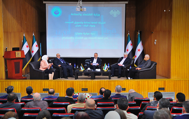 برعاية وزارة الاقتصاد والصناعة، وبالشراكة مع الشركة العامة لصناعة وتسويق الإسمنت ومواد البناء «عمران»، انعقدت ندوة حوارية بعنوان «نشر ثقافة الإسمنت بين الاقتصاد والاستثمار والاستخدام» في مدرج كلية الهندسة المدنية، حضر الفعالية ممثلون عن وزارة الاقتصاد والصناعة، ونقابات المهندسين والمقاولين والصناعيين، إلى جانب نخبة من الأكاديميين والمختصين في مجال البناء والمواد الإنشائية.