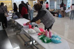 وذكرت سلمان أنه تم افتتاح معرض للأعمال اليدوية التي تعكس الحرف التقليدية، مثل مشغولات الحرير الطبيعي، بالإضافة إلى منتجات من الخيزران وقطع خشبية ولوحات فنية من عجينة السيراميك تجسد التراث المحلي، كما قدمت الجمعية عروضاً فنية شملت كورالاً غنائياً وفقرات زومبا للأطفال، في خطوة لتعزيز الفاعلية الثقافية للفعالية.