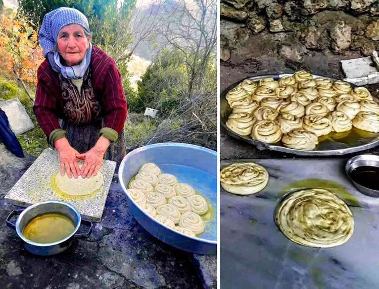 أما الخبز الميلادي، فهو طقس لا يقل أهمية، إذ يُحضّر من طحين، سمسم، زيت وسمن بلدي، ملح ، شمرا ، حيث تعجن المكونات جميعها ، وتُرقّ العجينة على شكل طبقات، وتدهن بالزيت، ثم تُلفّ على شكل دائرة وتخبز على التنور أو الصاج، لتملأ رائحتها الأجواء وتُعلن عن ميلاد عام جديد.