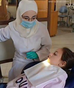 ونوهت مديرة الصحة المدرسية بأن المبادرات وبقعات الضوء التي بدأت فيها وزارة التربية والتعليم في الجمهورية العربية السورية حالياً هي موضوع تقديم الرعاية الصحية الأولية لكافة التلاميذ والكوادر التربوية في مديرية ( طب الفم) حيث تم إنشاء وتأسيس عيادات تخصصية في مجالات التشوهات الوجهية الفكية، و تقويم الأسنان، وتقويم الوجه والفكين، وفي مجال عيادات الليزر وتقديم الرعاية لطب أسنان الاطفال ذوي الاحتياجات الخاصة وذلك في مركز طب الفم بحيث يتم تقديم كافة الخدمات للكوادر التربوية وللتلاميذ وبشكل مجاني.