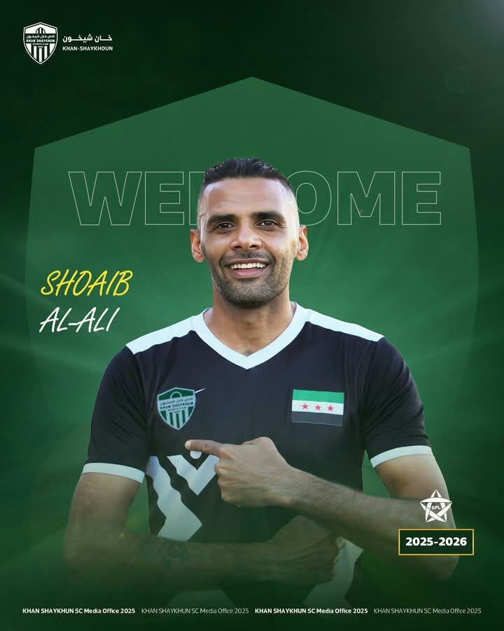 أنهت إدارة نادي خان شيخون الصاعد للمرة الأولى في تاريخه إلى الدوري الممتاز بكرة القدم جملة تعاقداتها للموسم الكروي الجديد ٢٠٢٥- ٢٠٢٦ وآخرها التوقيع مع لاعبنا الدولي وصاحب التجربة الكبرى في الملاعب السورية شعيب العلي.