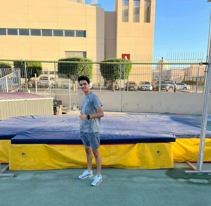 لاعب الوثب العالي حسام بياعي في نهائي دورة الألعاب الآسيوية للشباب