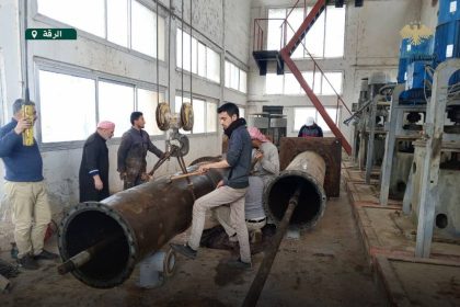 الفرق الهندسية بوزارة الطاقة تواصل تأهيل محطات الضخ في الرقة